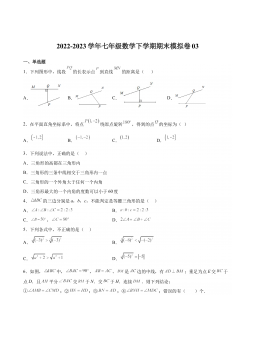 专题07本学期难点分析(综合36道)尖子生拓展思维篇,建议可以先熟练专题06压轴题一、单选题1.如图,平面直角坐标系中存在点A(3,2),点B(1,0),以线段AB为边作等腰三角形ABP,使得点P在坐标轴上.则这样的P点有()A.4个B.5个C.6个D.7个【答案】D【解析】本题是开放性试题,由题意知A、B是定点,P是动点,所以要分情况讨论:以AP、AB为腰、以AP、BP为腰或以BP、AB为腰.则满足条件的点P可求.由题意可知:以AP、AB为腰的三角形有3个;以AP、BP为腰的三角形有2个;以BP、AB为腰的三角形有2个.所以,这样的点P共有7个.故选D.【点睛】本题考查了等腰三角形的判定及坐...