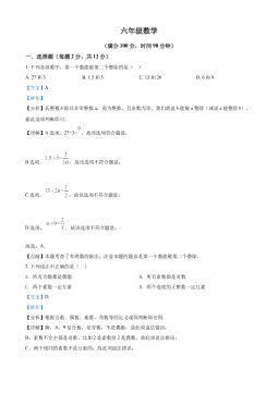 期末真题模拟训练卷(3)(满分100分,完卷时间90分钟)考生注意:1.本试卷含四个大题,共27题.答题时,考生务必按答题要求在答题纸规定的位置上作答,在草稿纸、本试卷上答题一律无效;2.除第一、二大题外,其余各题如无特别说明,都必须在答题纸的相应位置上写出解题的主要步骤;3.本次考试可使用科学计算器,π取3.14.一、选择题(本大题共6题,每题3分,满分18分)1.(2020·全国其他模拟)关于质数,下列说法正确的是().A.质数的因数只有1和它本身B.两个质数的和一定是偶数C.质数都不是2的倍数D.1、3、5、7、9各数中,除1以外都是质数2.(2020·全国课时练习)下面几个分数中,不能...