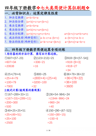 【七大类型简便计算狂刷题】四下数学+答案